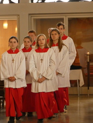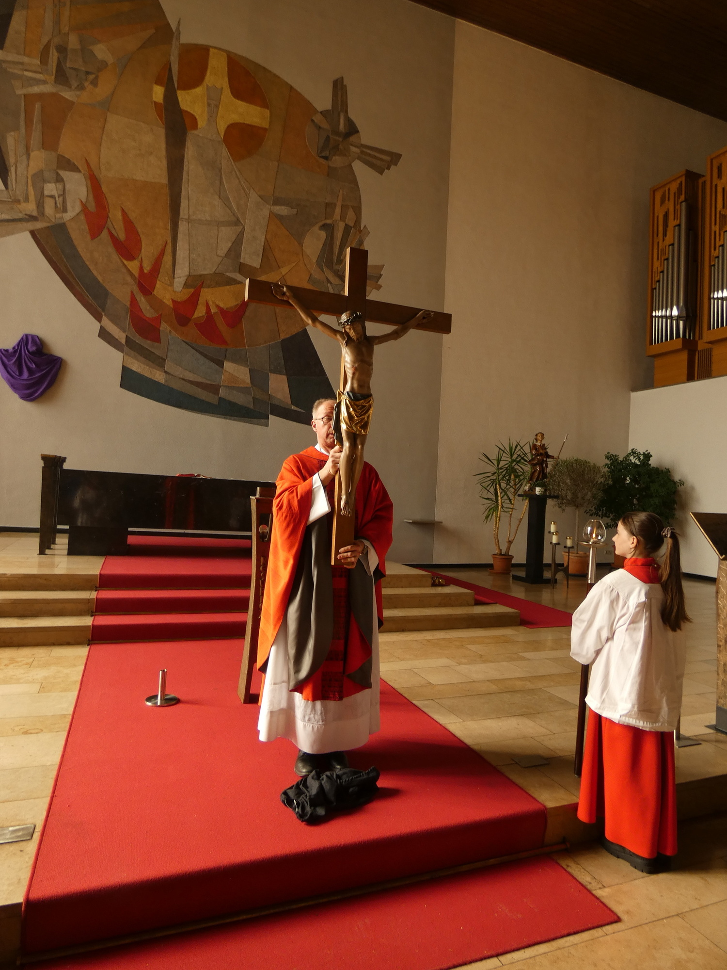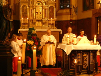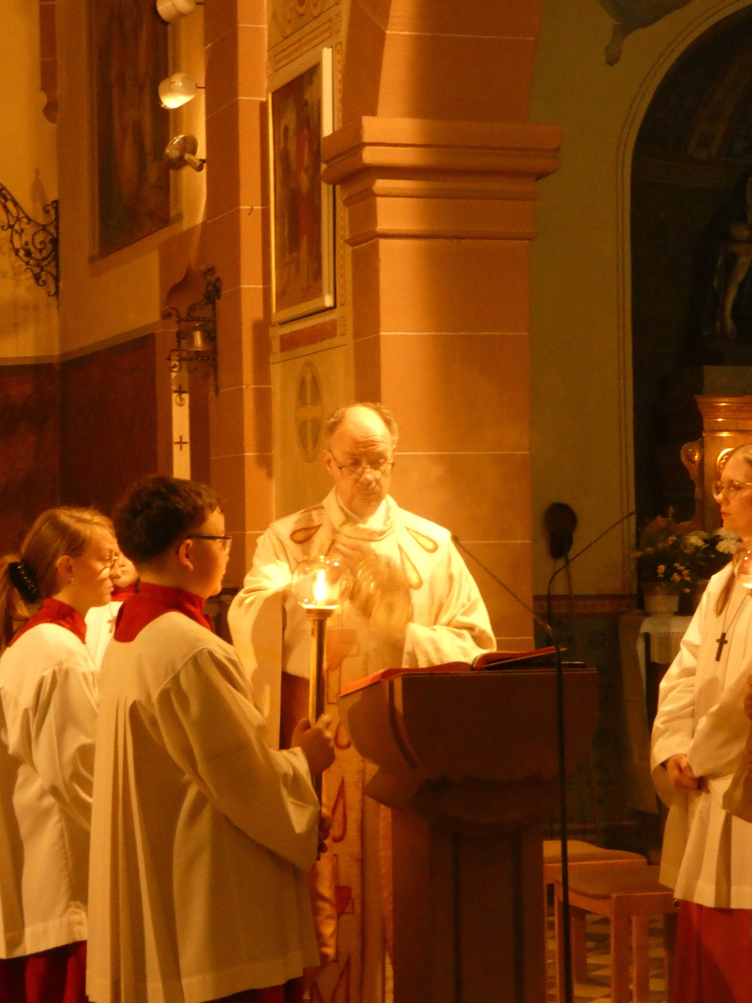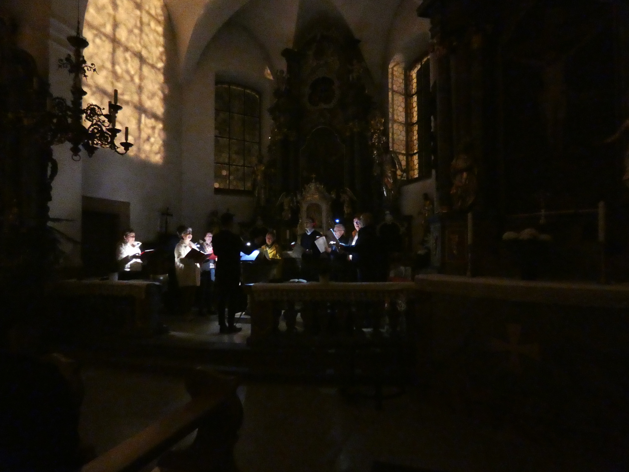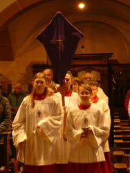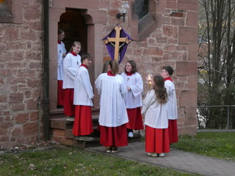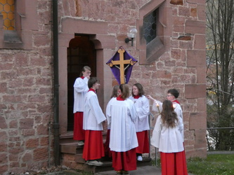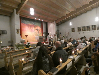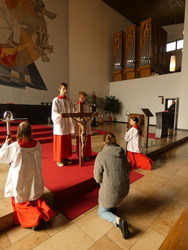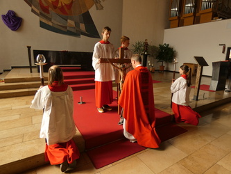 Die Gottesdienste zu Karfreitag und zur Osternacht wurden feierlich umrahmt von der Schola sanctae Caecilia unter der Leitung von Niklas Steinzer, der auch die Orgel spielte.