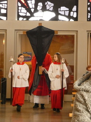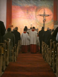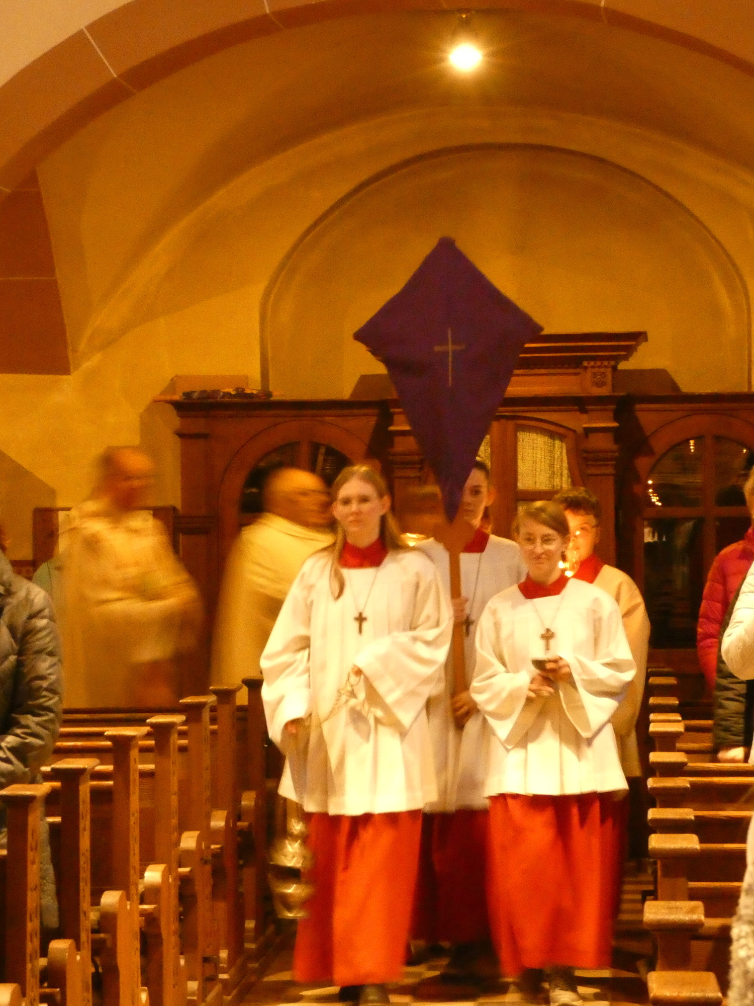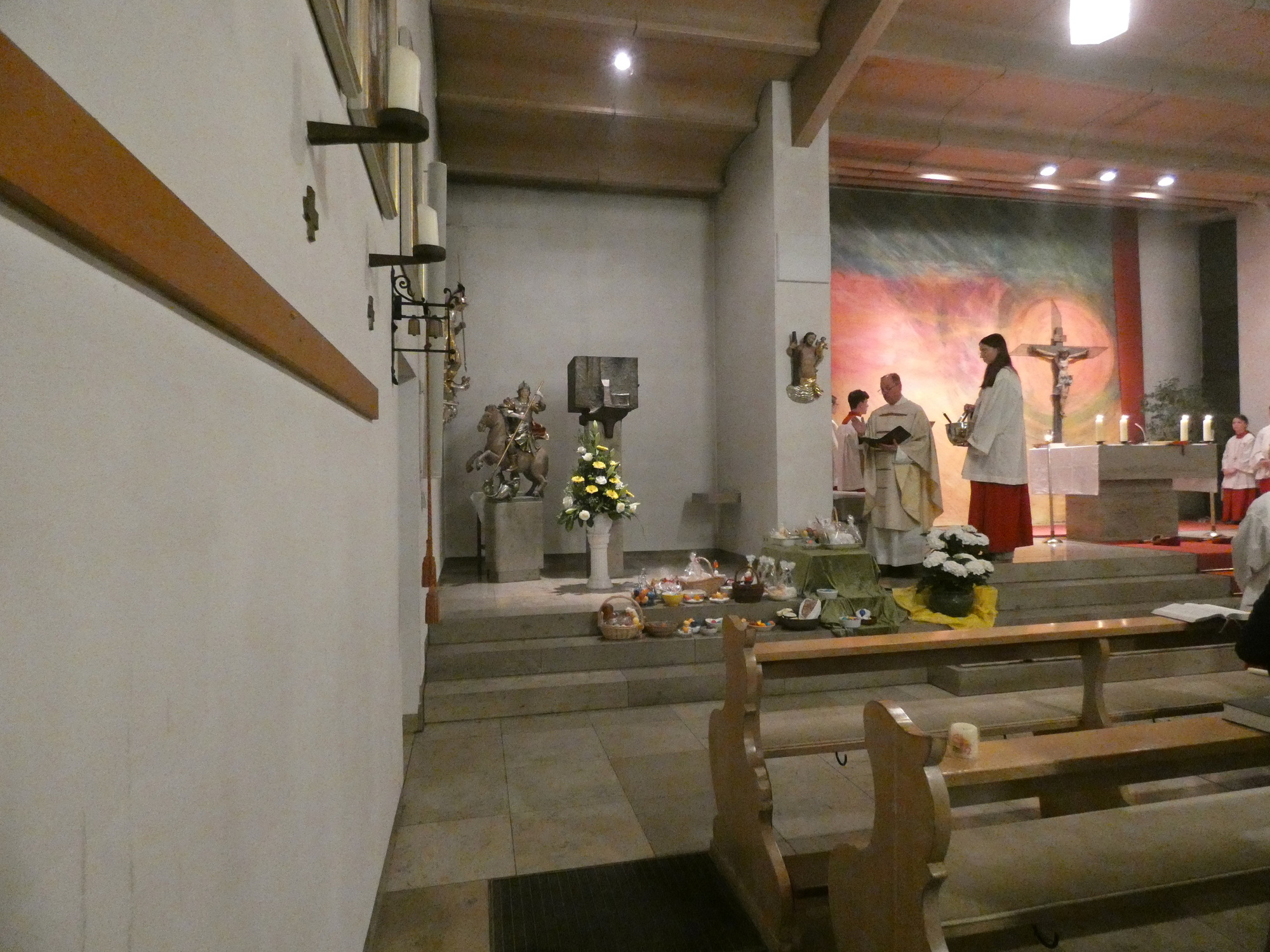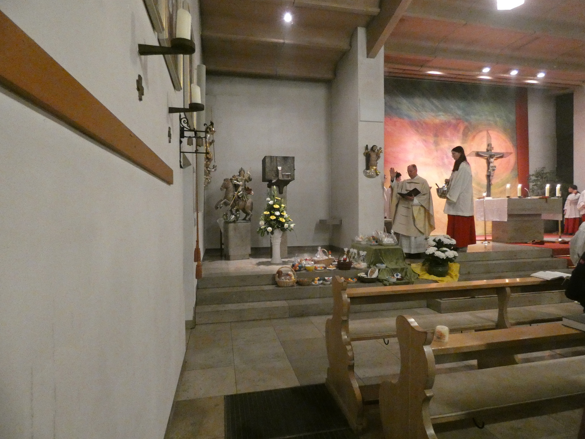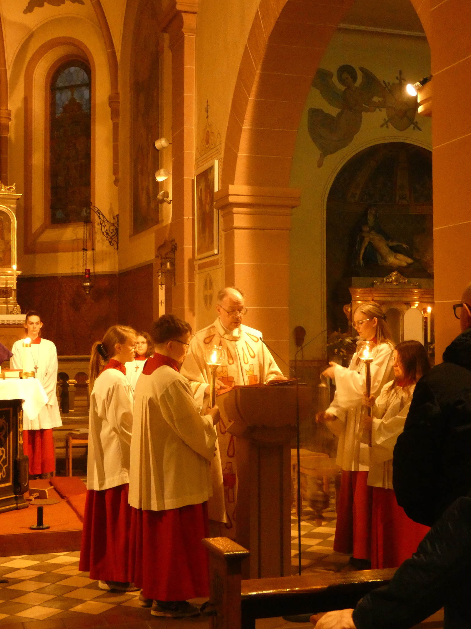 Die Gottesdienste zu Karfreitag und zur Osternacht wurden feierlich umrahmt von der Schola sanctae Caecilia unter der Leitung von Niklas Steinzer, der auch die Orgel spielte.