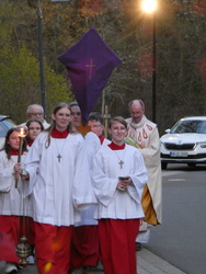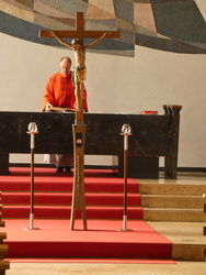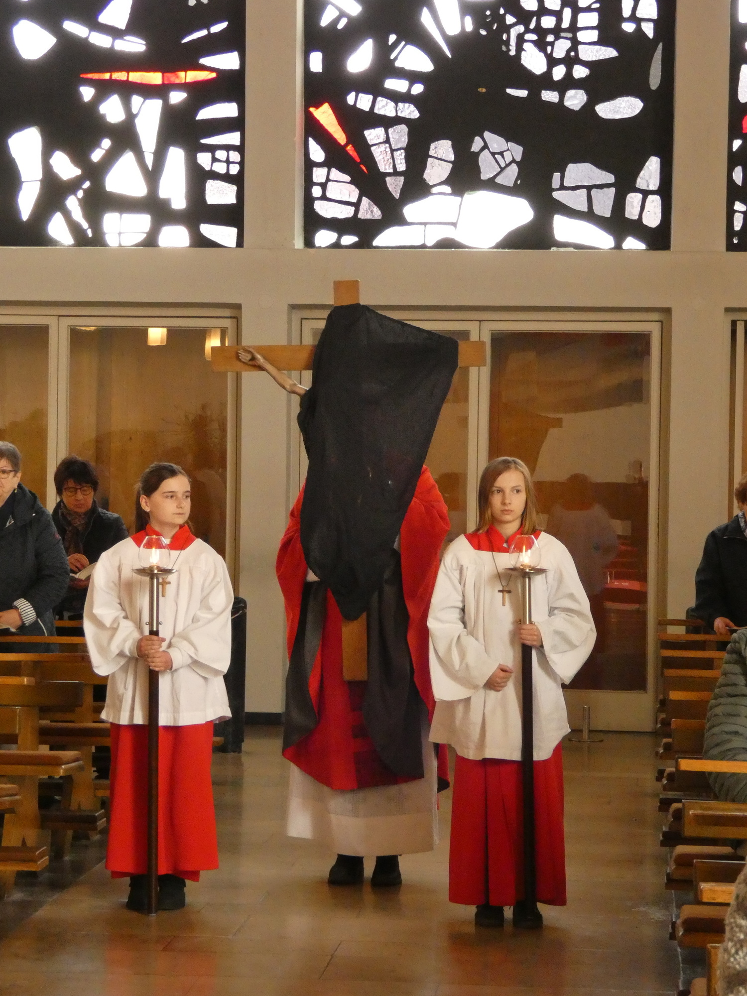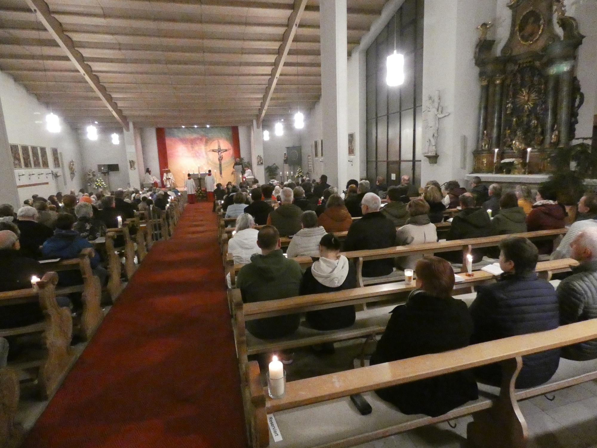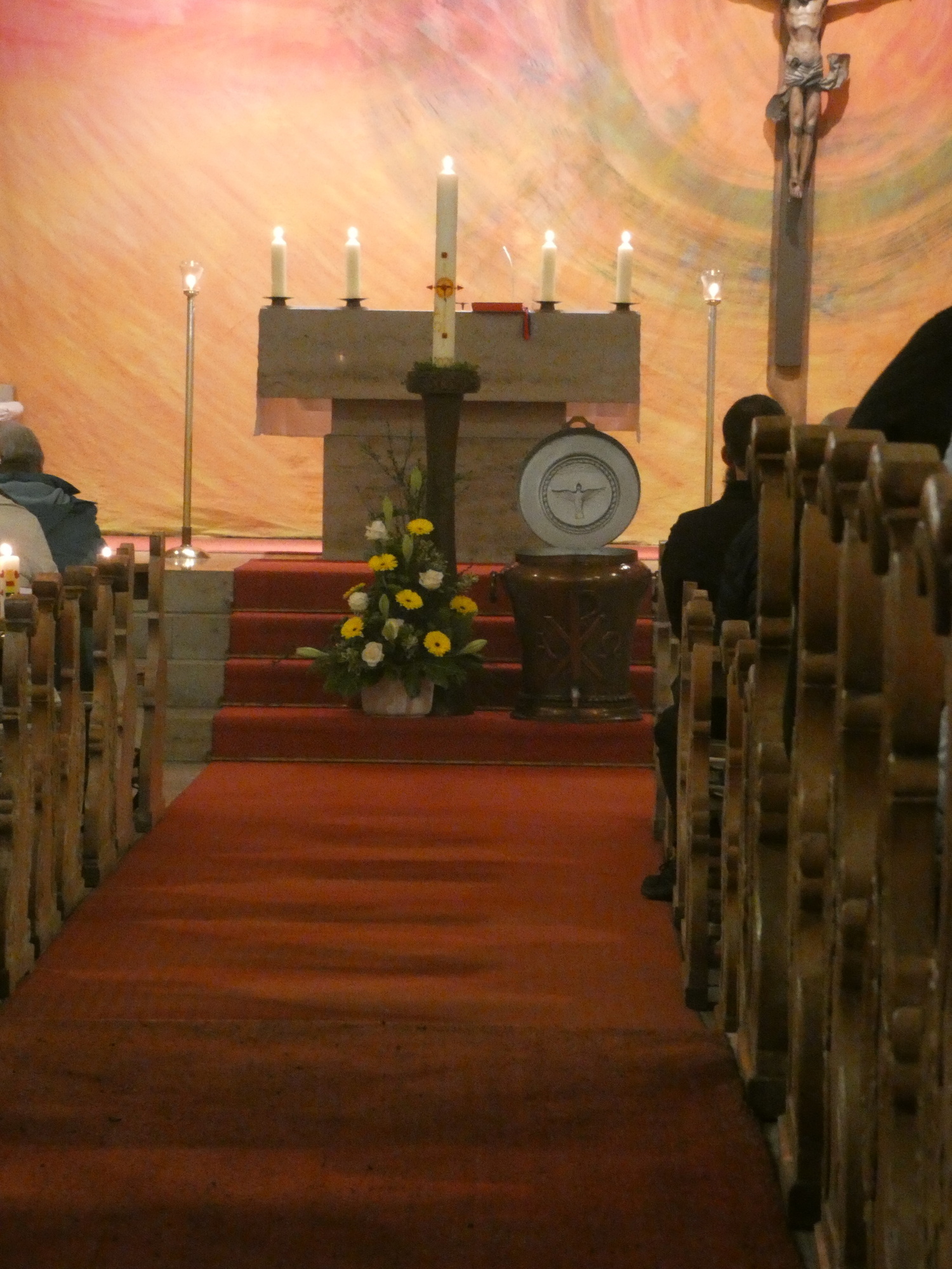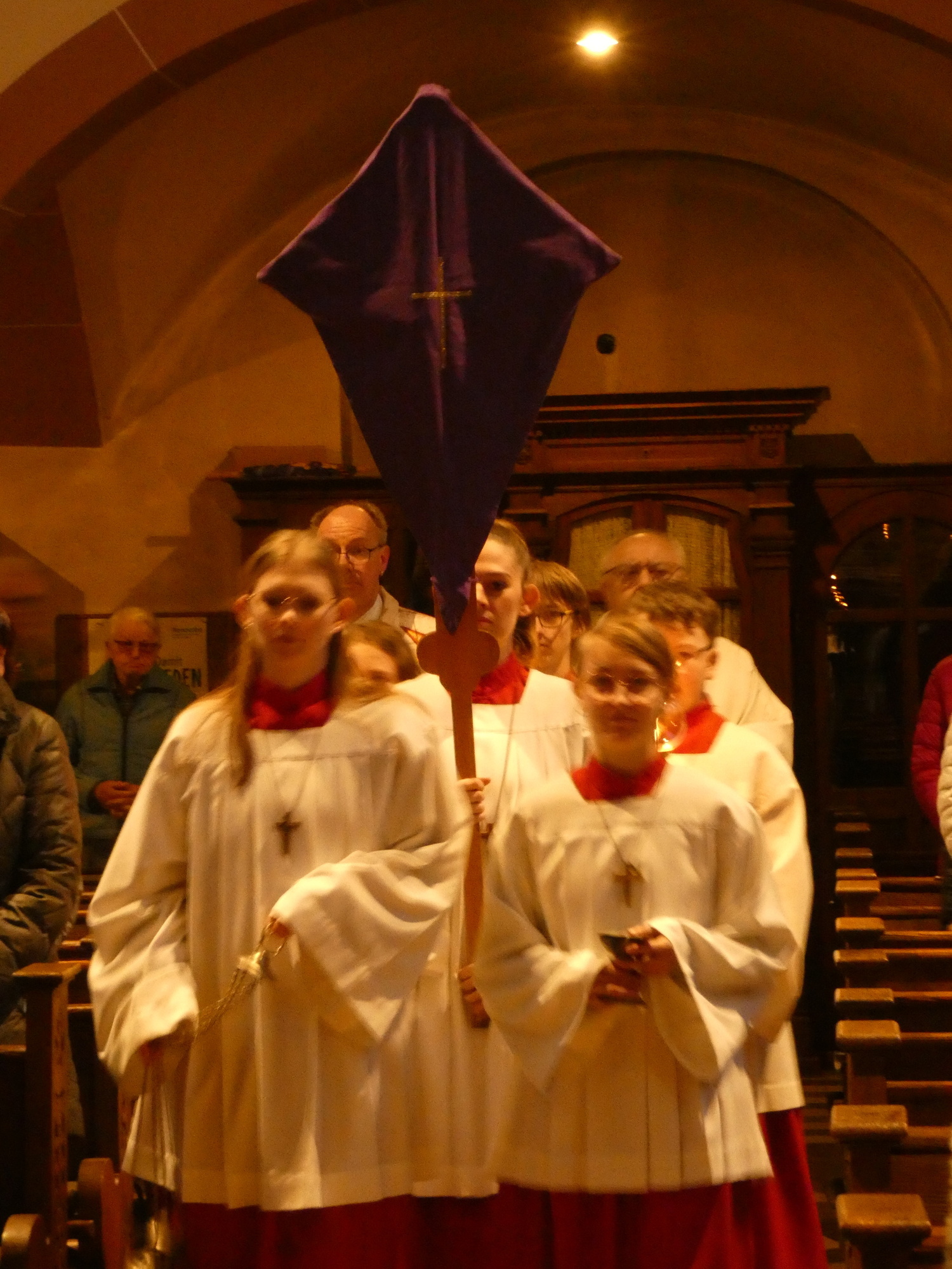 Die Gottesdienste zu Karfreitag und zur Osternacht wurden feierlich umrahmt von der Schola sanctae Caecilia unter der Leitung von Niklas Steinzer, der auch die Orgel spielte.