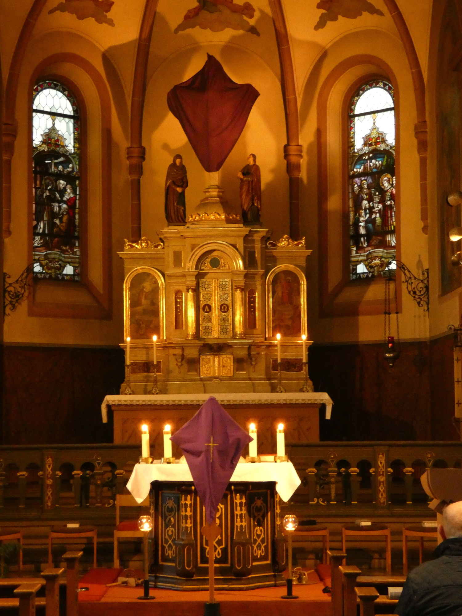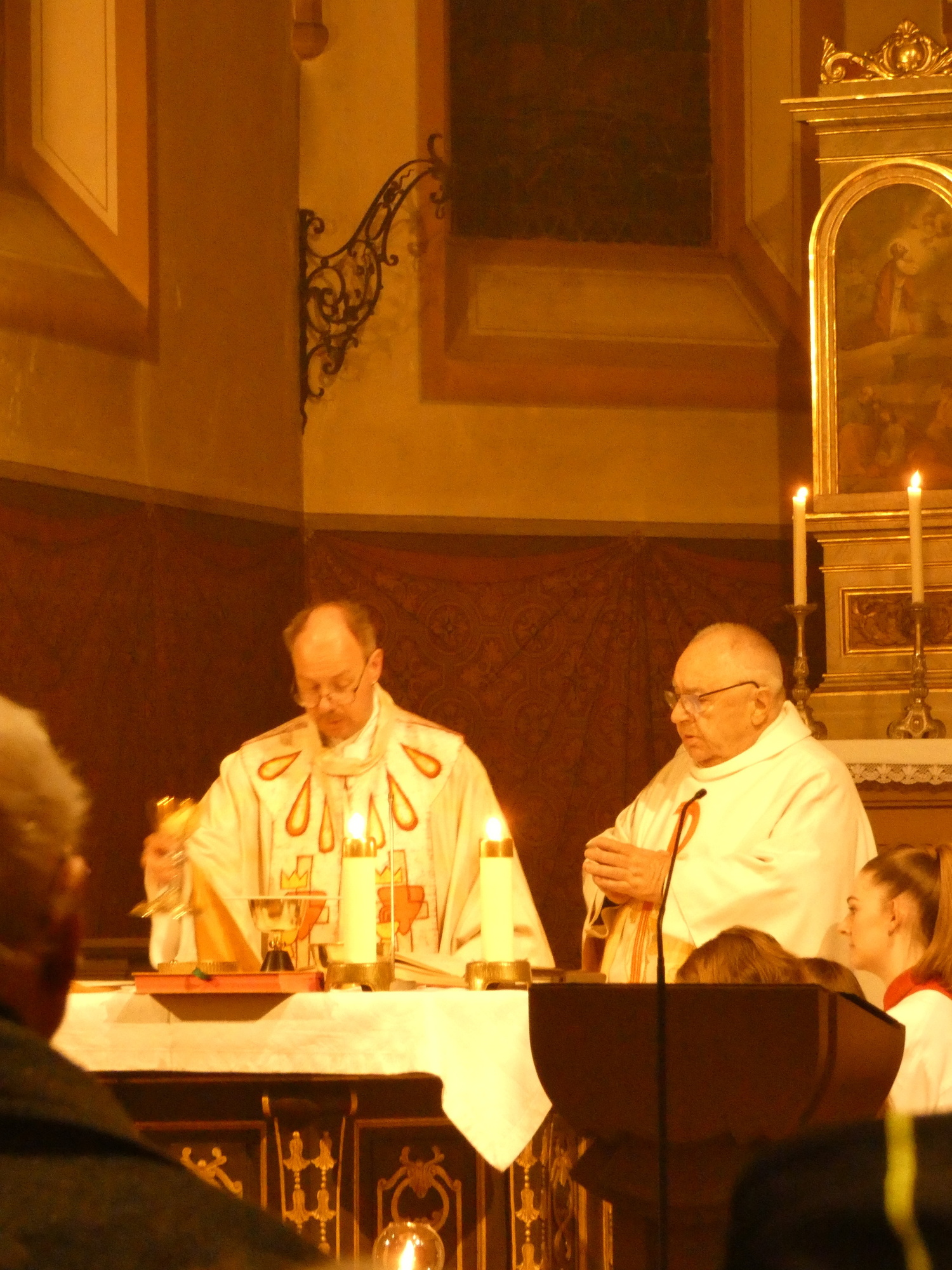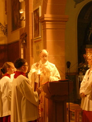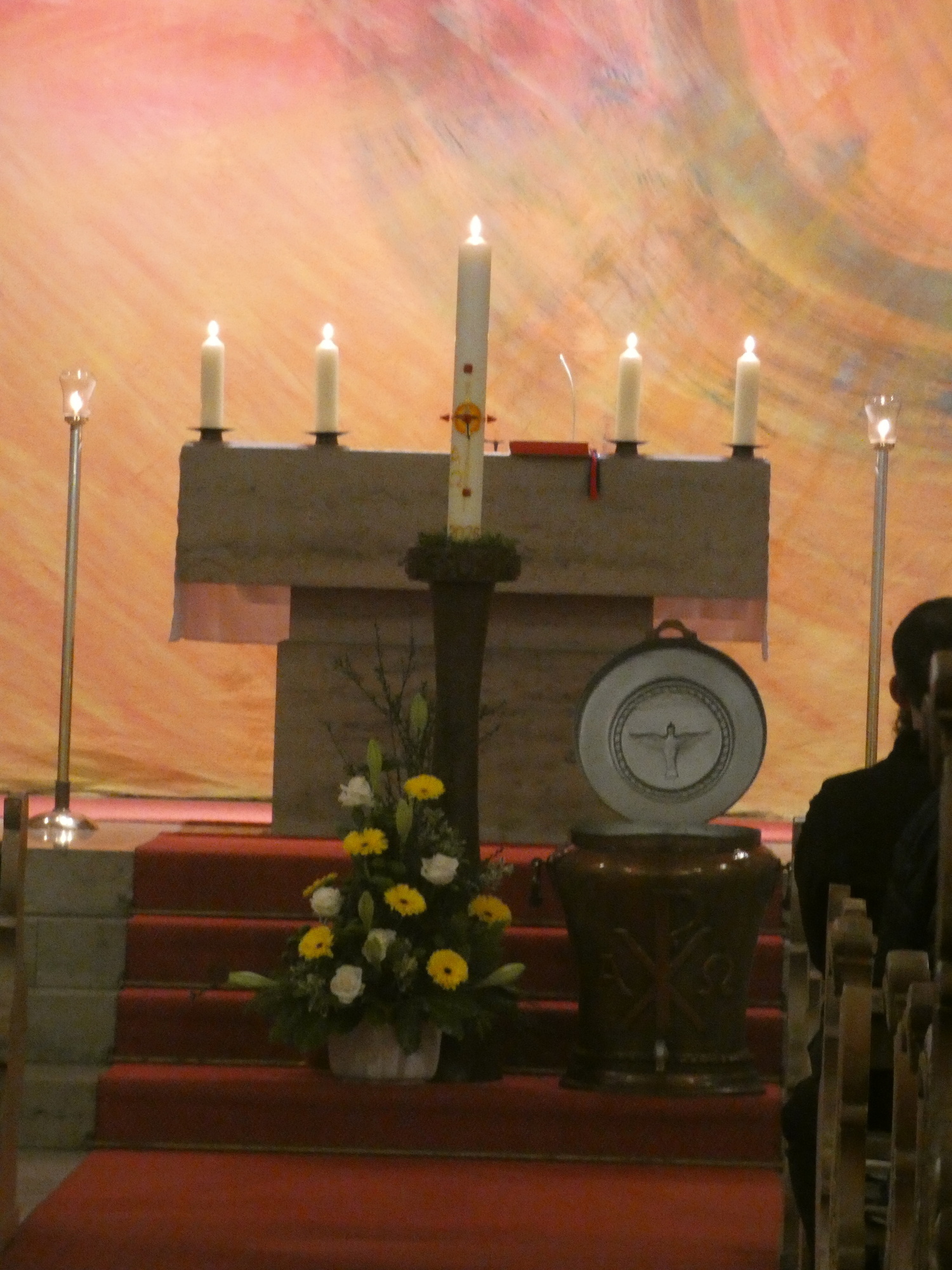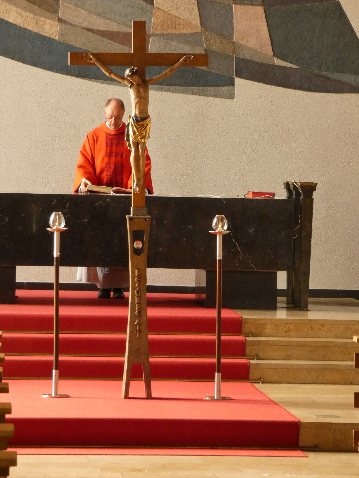 Die Gottesdienste zu Karfreitag und zur Osternacht wurden feierlich umrahmt von der Schola sanctae Caecilia unter der Leitung von Niklas Steinzer, der auch die Orgel spielte.