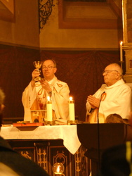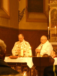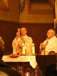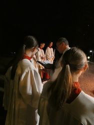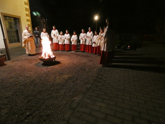 Die Mutter aller Liturgien, der höchste Gottesdienst, die Feier der Osternacht wurde am Karsamstag Abend in Keilberg gefeiert. Zu Beginn versammelten sich die Ministranten und Pfarrer Michael Prokschi am lodernden Feuer, welches gesegnet wurde. Ebenso wurde die neue Osterkerze gesegnet und mit der Flamme des Feuers entzündet. Der Einzug in die dunkle Kirche zeigte die Wirkmacht der kleinen Flamme, die dann Stück für Stück die Kerzen der Gottesdienstbesucher entzündete.
