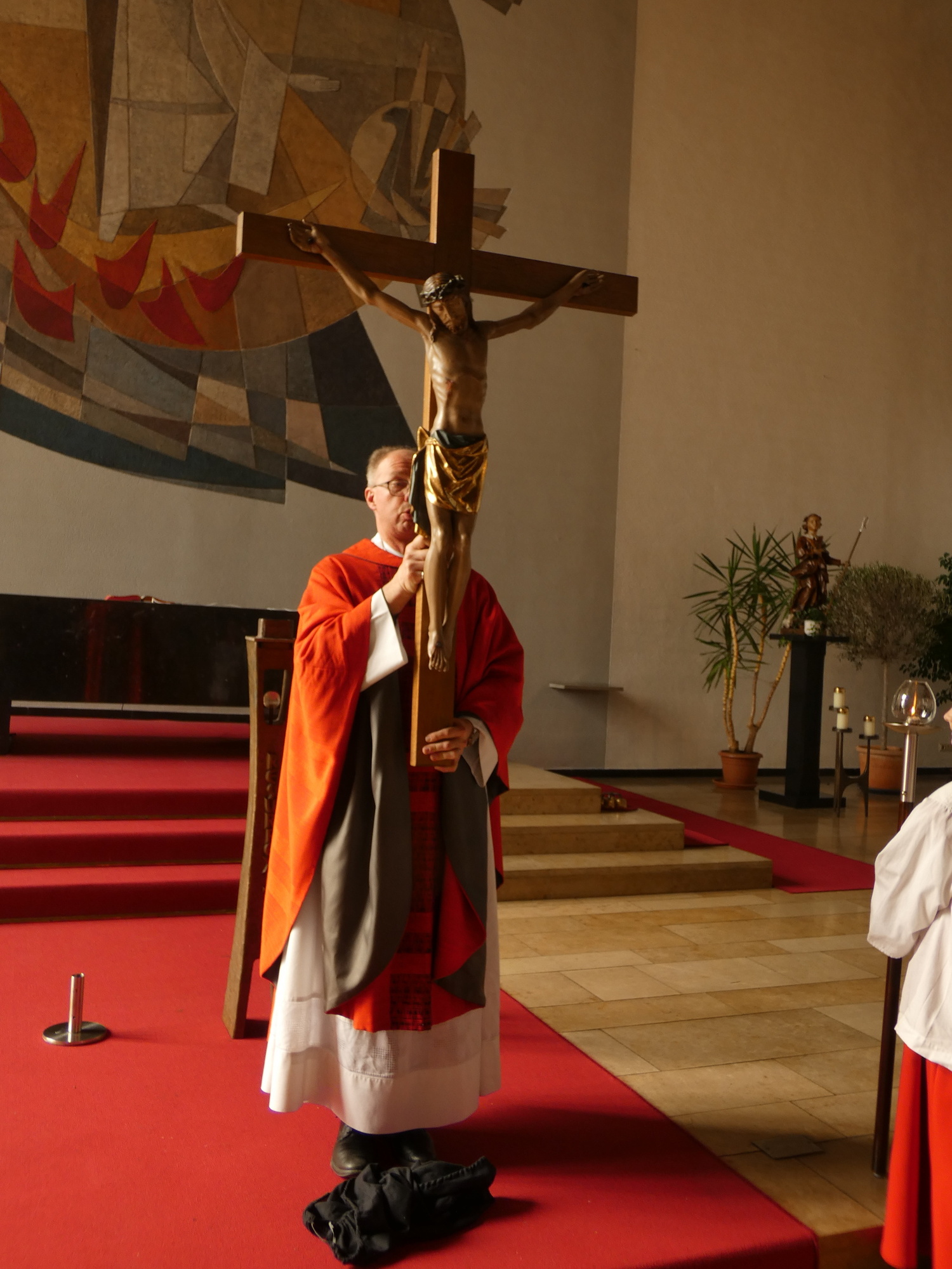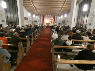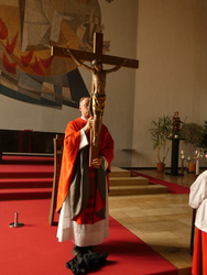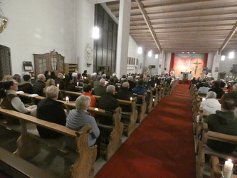 Zur Todesstunde Jesu versammelte sich die Gemeinde Bessenbach in der Pfarrkirche in Straßbessenbach, gedachte dem Leiden und Sterben Jesu. In verteilten Rollen wurde die Passion Jesu verlesen, im Anschluss daran blickte Pfarrer Michael Prokschi in seiner Predigt auf das Zeichen des Kreuzes. In der größten Verlassenheit des Lebens sich mit Christus verbunden fühlen. Auch unsere ganz persönlichen Karfreitage im anvertrauen. Zur Kreuzverehrung wurde ein großes Kreuz in die Kirche getragen, die Gemeinde blickte auf Christus am Kreuz. In den großen Fürbitten wurde für die Kirche und in den Anliegen der Welt gebetet. Der stille Gottesdienst endete mit der Erzählung der Grablegung Jesu und der Grabesruhe.