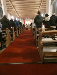 Nach dem feierlichen Exultet, dem Osterlob, folgten die Lesungen aus dem alten Testament, die von der Kraft und Größe Gottes, von seinem Heilshandeln an seinem Volk Israel, an den Menschen erzählten. Zum Gloria erklang machtvoll die Orgel, die Glocken kündeten die Auferstehung Jesu. Nach der Taufwasserweihe und der Tauferneuerung schloss sich die Eucharistiefeier an. Zum Ende des Gottesdienstes wurden die Osterspeisen gesegnet und Pfr. Prokschi lud alle ein zum gemeinsamen Osterfest am Ignaz Klug Haus.