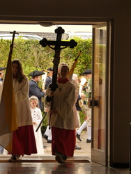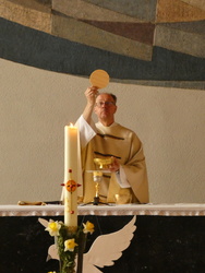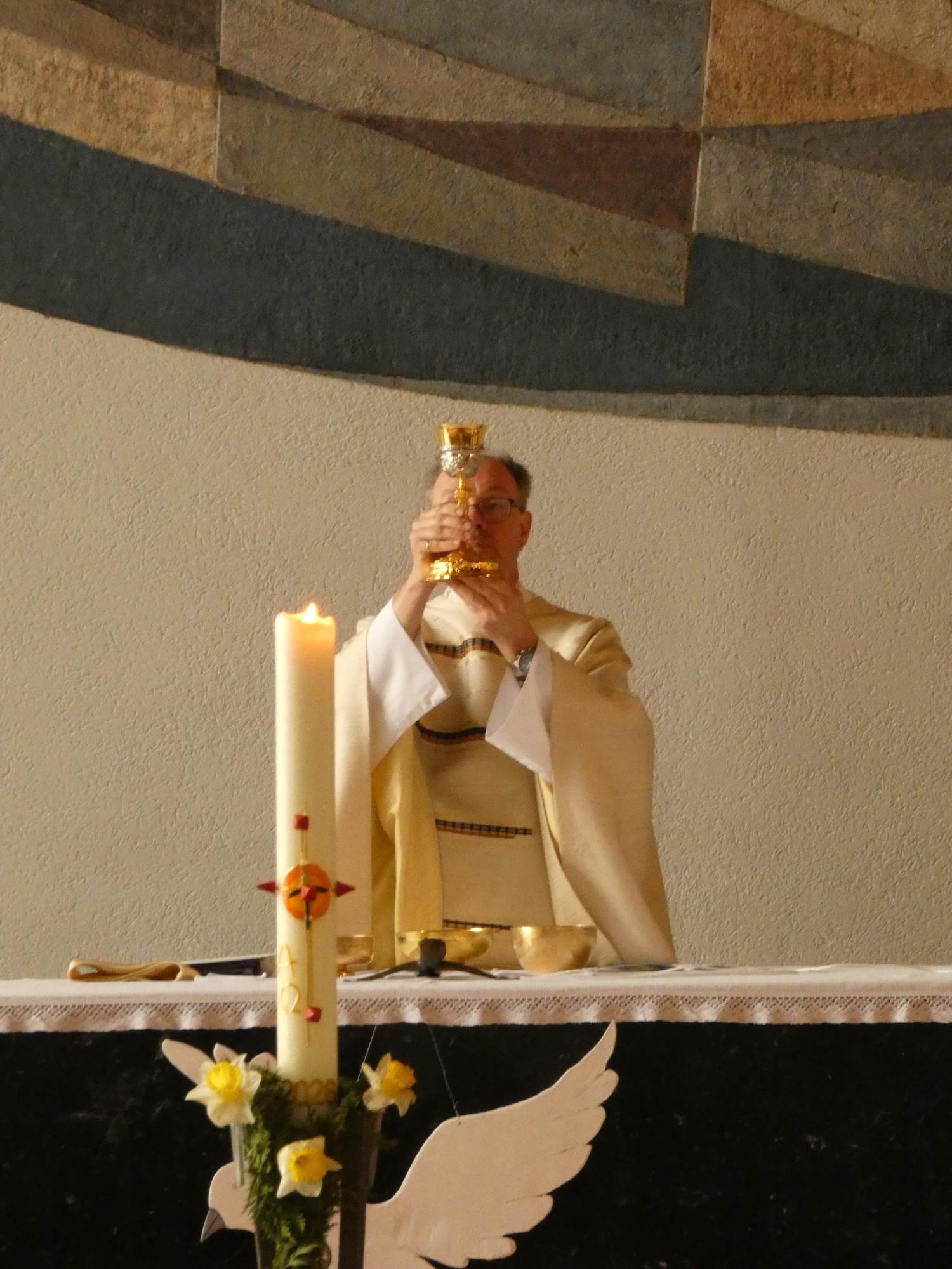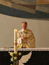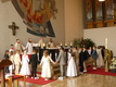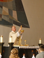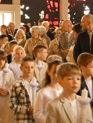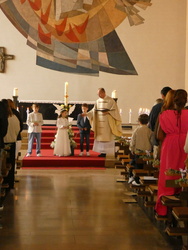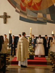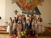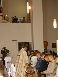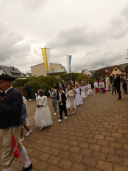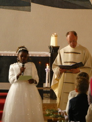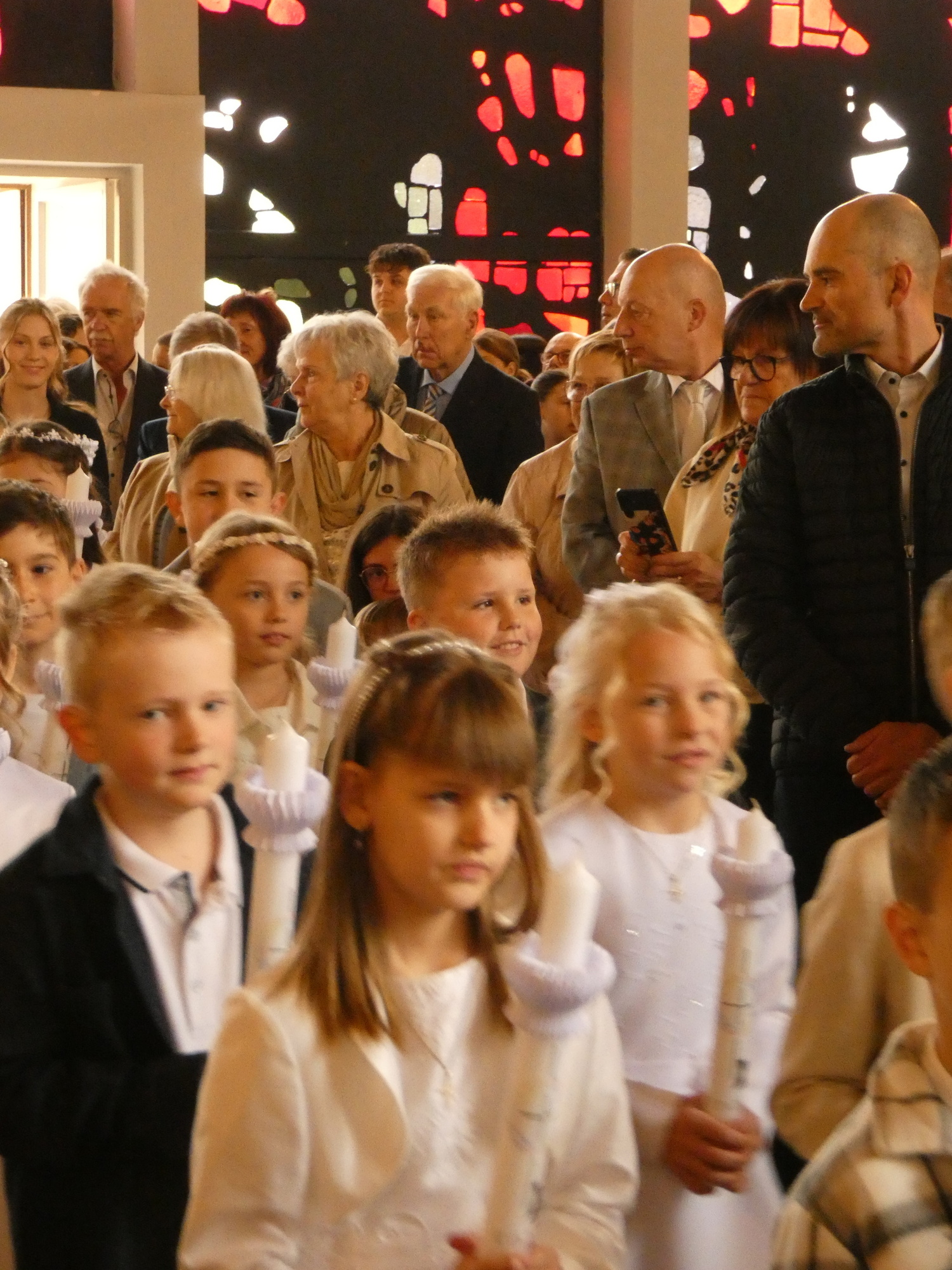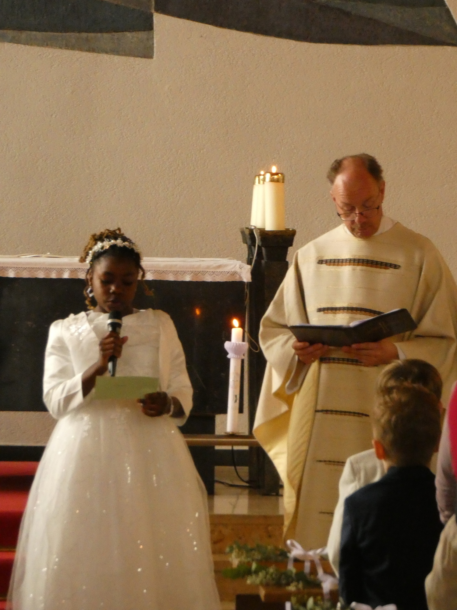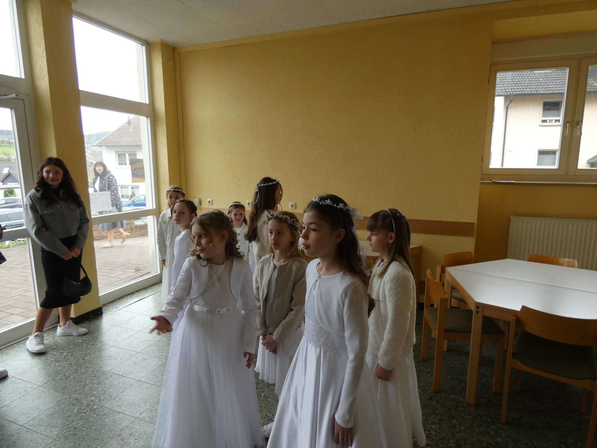 In den zurückliegenden Wochen wurden sie von Pfarrer Michael Prokschi wie auch dem Team der Katechetinnen begleitet und auf diesen Tag vorbereitet. Die Musikkapelle Keilberg spielte auf dem Weg zur Kirche und im voll besetzten Gotteshaus in Straßbessenbach fand der feierliche Gottesdienst statt. Zu Beginn entzündeten die Kinder ihre Kerzen an der Osterkerze und diese wurden dann rund um den Altar aufgestellt. Die Kinder brachten sich bei den Kyrierufen wie auch bei den Fürbitten ein, zum Vater unser und zum Empfang der Kommunion waren alle mit um den Altar versammelt. Der Festgottesdienst wurde musikalisch umrahmt von Niklas Steinzer an der Orgel sowie von den Trompetern Sebastian Lang und Klaus Winkel.