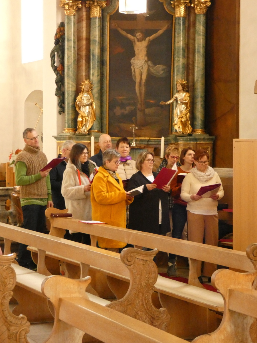 Passend zur Fastenzeit wurden die einzelnen Liedbeiträge ausgewählt und einstudiert. Zum Kyrie, als Antwortpsalm, Credo oder auch zur Gabenbereitung und zum Agnus Dei wurden Wechselgesänge zu Gehör gebracht und von der Gemeinde mit unterstützt. Eine besinnliche Einstimmung in die Tage der Fastenzeit.