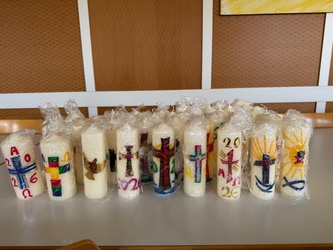 Die Bessenbacher Ministranten aus allen drei Pfarreien haben auch in diesem Jahr wieder Osterkerzen gestaltet.